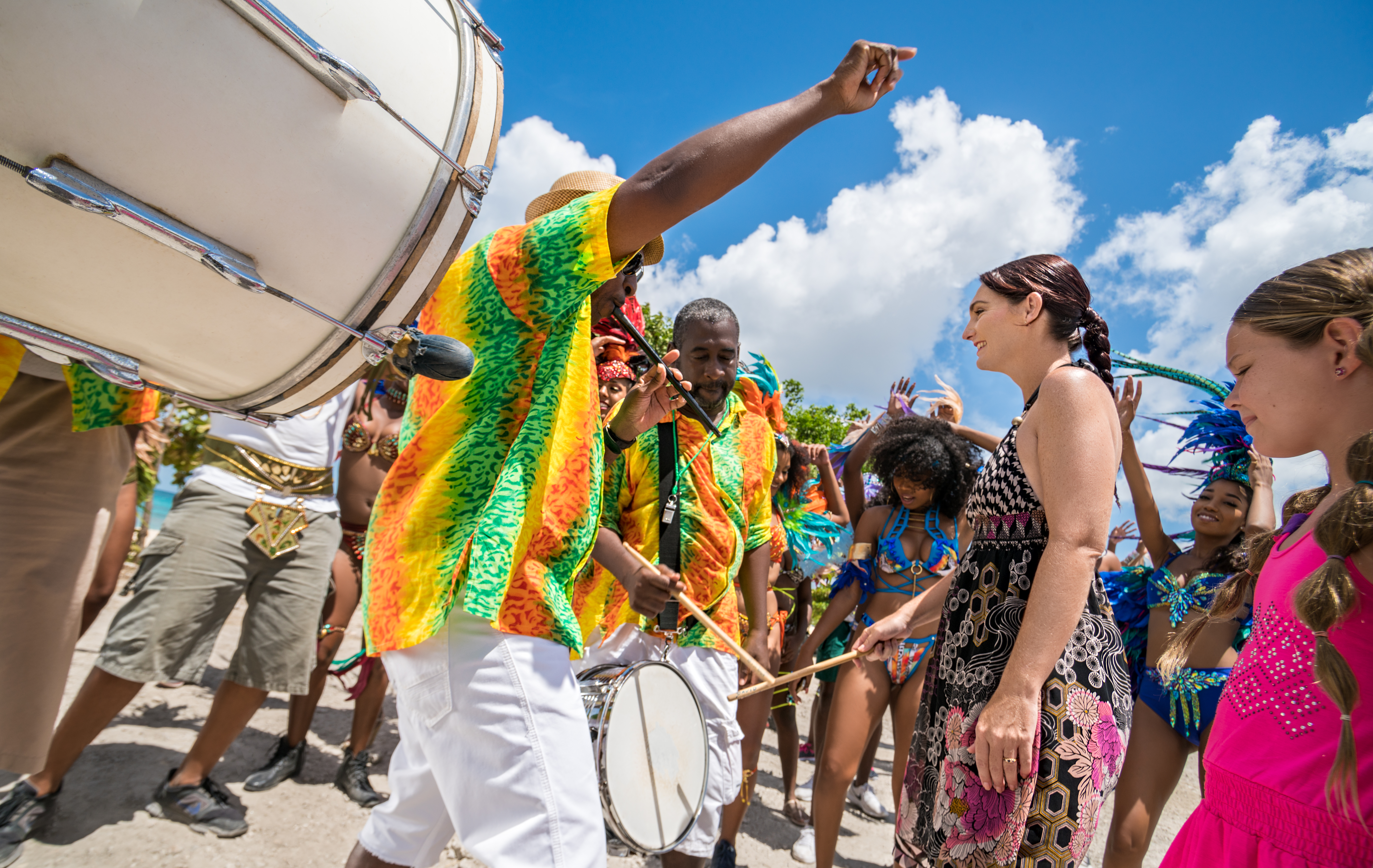 Tuk Bands perform during celebrations and island festivals such as Crop Over, the Holetown Festival, at Christmas and on New Year’s Day. A Tuk Band is usually accompanied by Mother Sally, the Shaggy Bear, the Donkey Man and the Stiltman - costumed characters which are African in origin and which emerged from slavery and our colonial past.