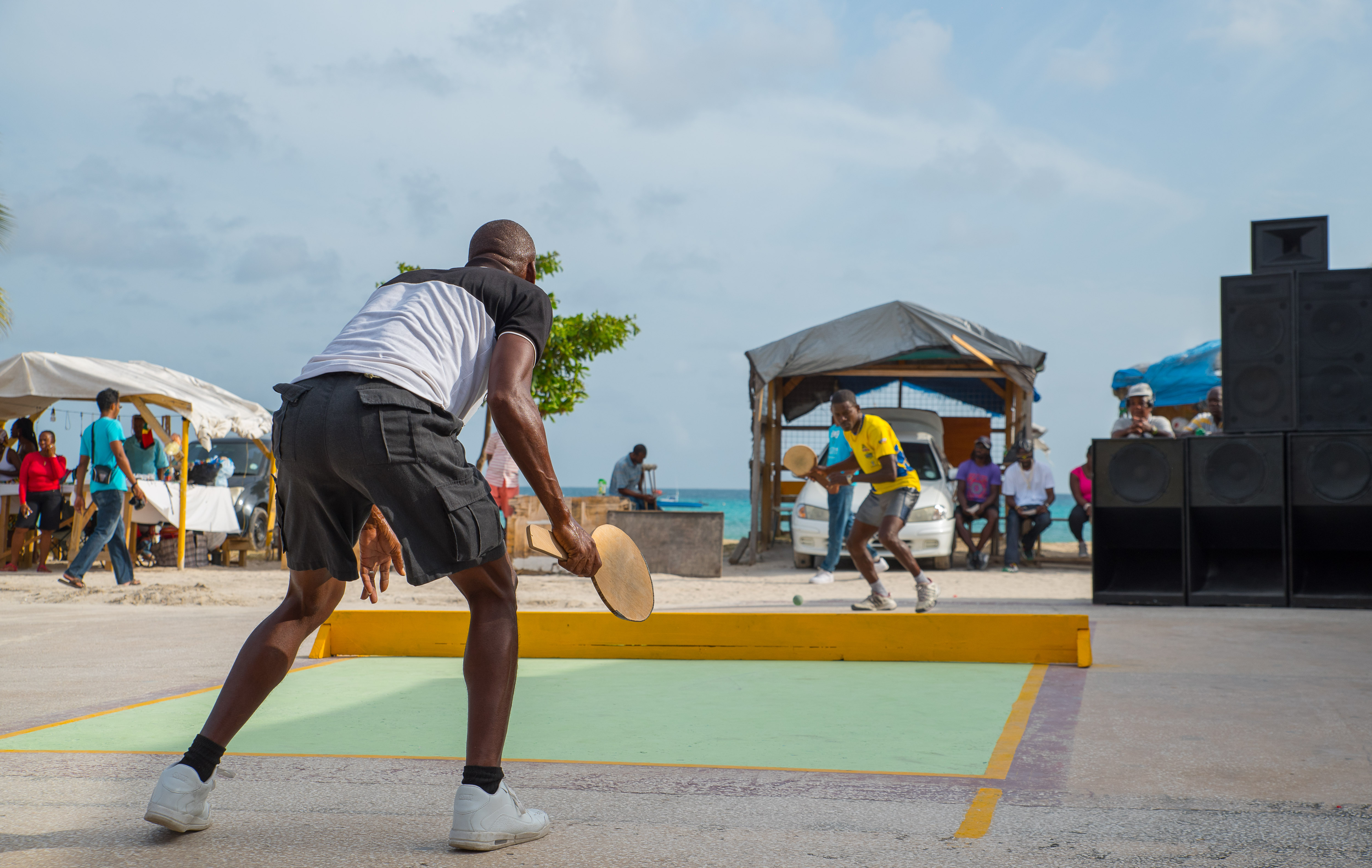 A national sport which originated in Barbados around 1910, was first played on a court in the road. It is now played on courts marked in car parks or other paved surfaces.