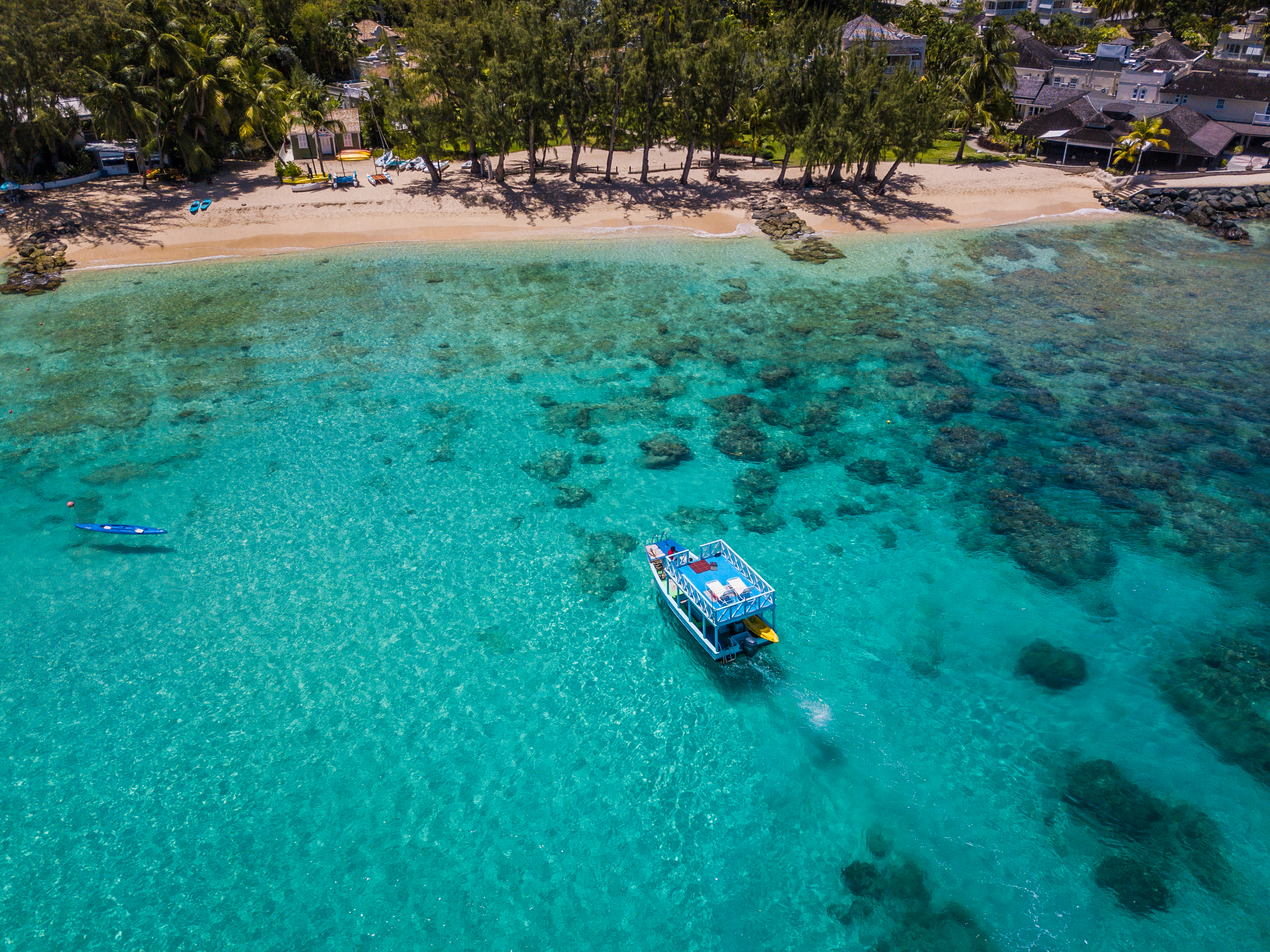 With the attrition of the coral limestone land called Barbados, which was pushed out of the ocean thousands of years ago, the beautiful white sandy beaches are created.